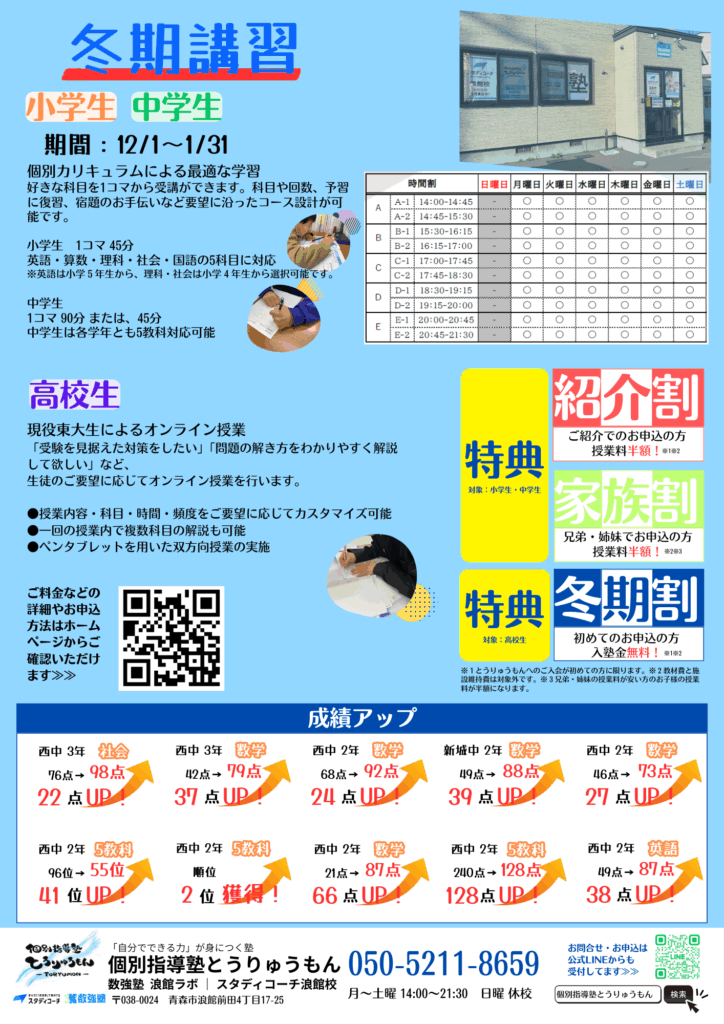 この機会にぜひ、個別指導塾とうりゅうもんの冬期講習にお申込ください!